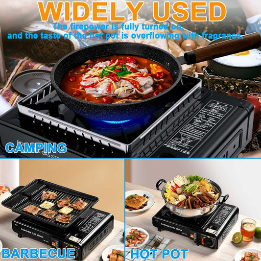 Portable Camping Stove,Dual Fuel Propane & Butane Stove with Wind Baffle,Portable Camping Stove for Outdoor Cooking, with Carrying Case Great for Emergency Preparedness Kit