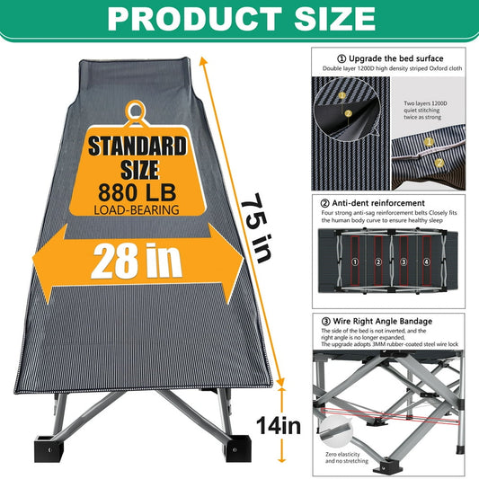 Folding Bed Cot with 3.3 Inch Mattress, 75"* 28" Folding Camping Cots with Carry Bag, Folding Sleeping Cot Guest Bed